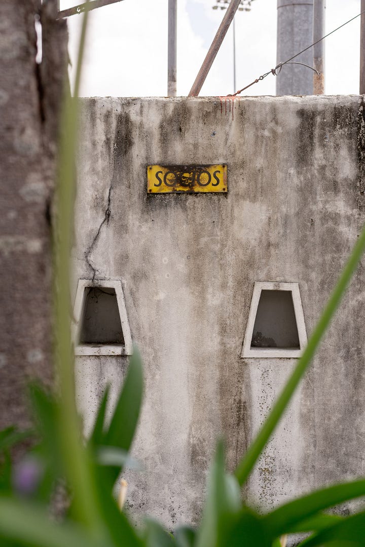 Na minha mais recente visita ao campo do Sport Club Castêlo da Maia, o plano passava por fotografar as bilheteiras (que têm um formato bastante particular) e o logo do clube em pedra, que encabeça a fachada do estádio. Tive, no entanto, a sorte de encontrar os portões abertos, o que me permitiu entrar no recinto. As instalações cresceram e modernizaram-se, mas, na essência, o lugar mantém-se muito fiel ao original, como poderão perceber pelas imagens. Aqui fica uma pequena amostra do registo que fiz por lá: