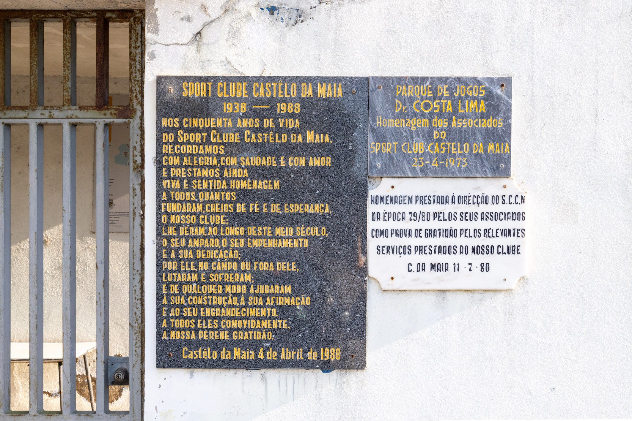 Como podem imaginar, à boleia do Futebol de Tostões, acabei por voltar a muitos destes recintos nos últimos anos. Alguns desapareceram do mapa, outros foram remodelados para se adaptarem às exigências actuais, mas muitos deles teimam em não deixar morrer uma série de pormenores que convocam memórias – as minhas e as de todos aqueles que por lá passaram. Um desses exemplos é o campo que vos trago hoje, a casa do Sport Club Castêlo da Maia, clube ao qual o meu pai pertenceu em tempos, como provam estes tesouros que ainda existem lá por casa: